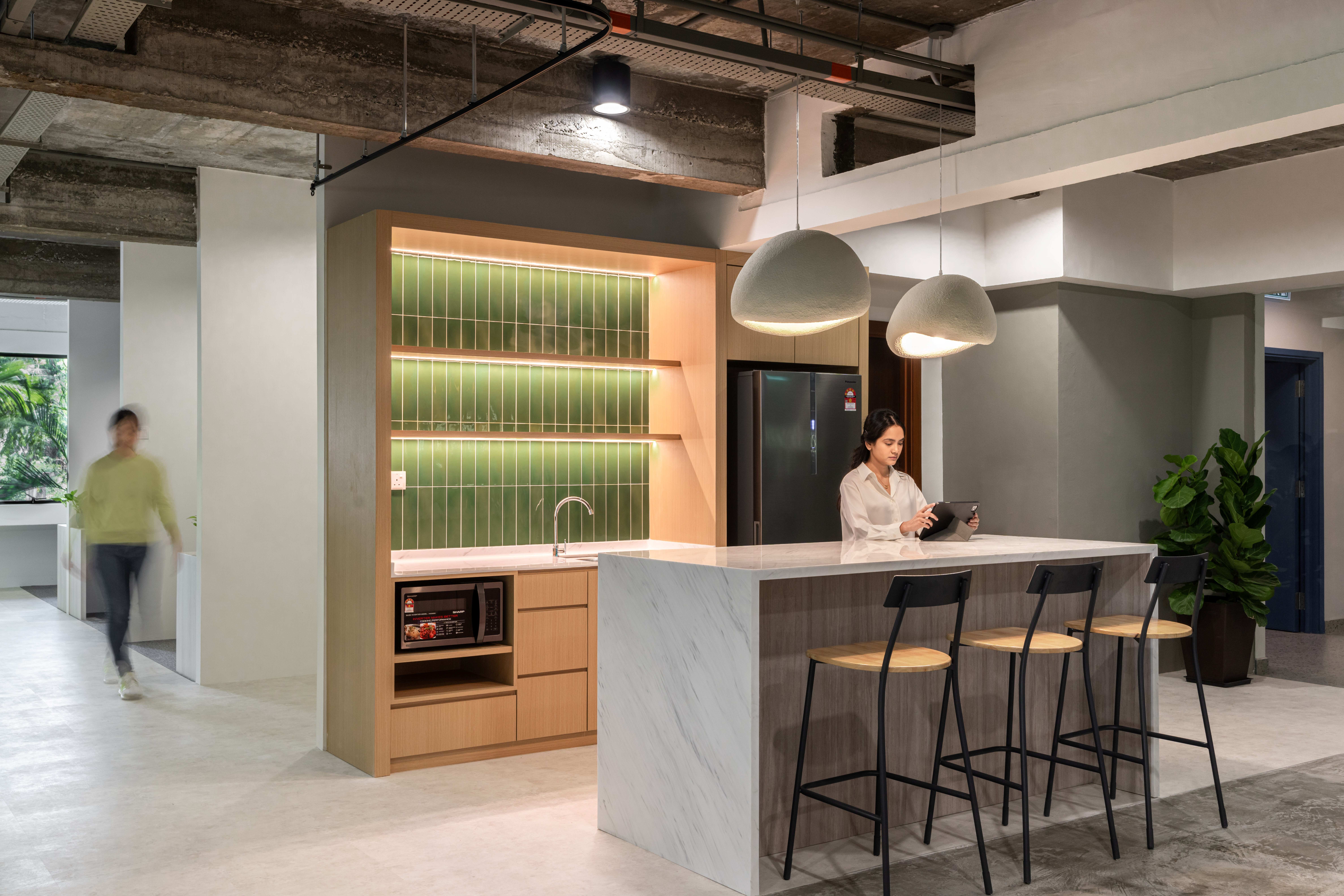 The vision for this workspace is inspired by the concept of a ‘Home Away from Home’ with an essence of a New York loft design. Embracing the team’s atypical working hours, Prenetics’ decision-makers prioritised having a space that puts the comfort, health, and well-being of their team at the forefront. This approach aims to foster a healthy and integrated work-life experience and intentionally trades the corporate office identity for a youthful, contemporary touch.